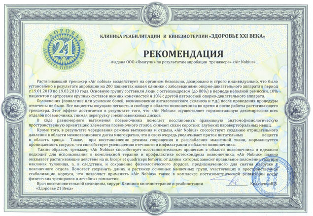 Принцип работы тренажера «Air Nobius» основан на растяжении. Растяжение позвоночника – самый известный и действенный способ сохранить здоровье спины, и благодаря тренажеру «Air Nobius» Вы совершенно безопасно и безболезненно достигните восхитительных результатов!